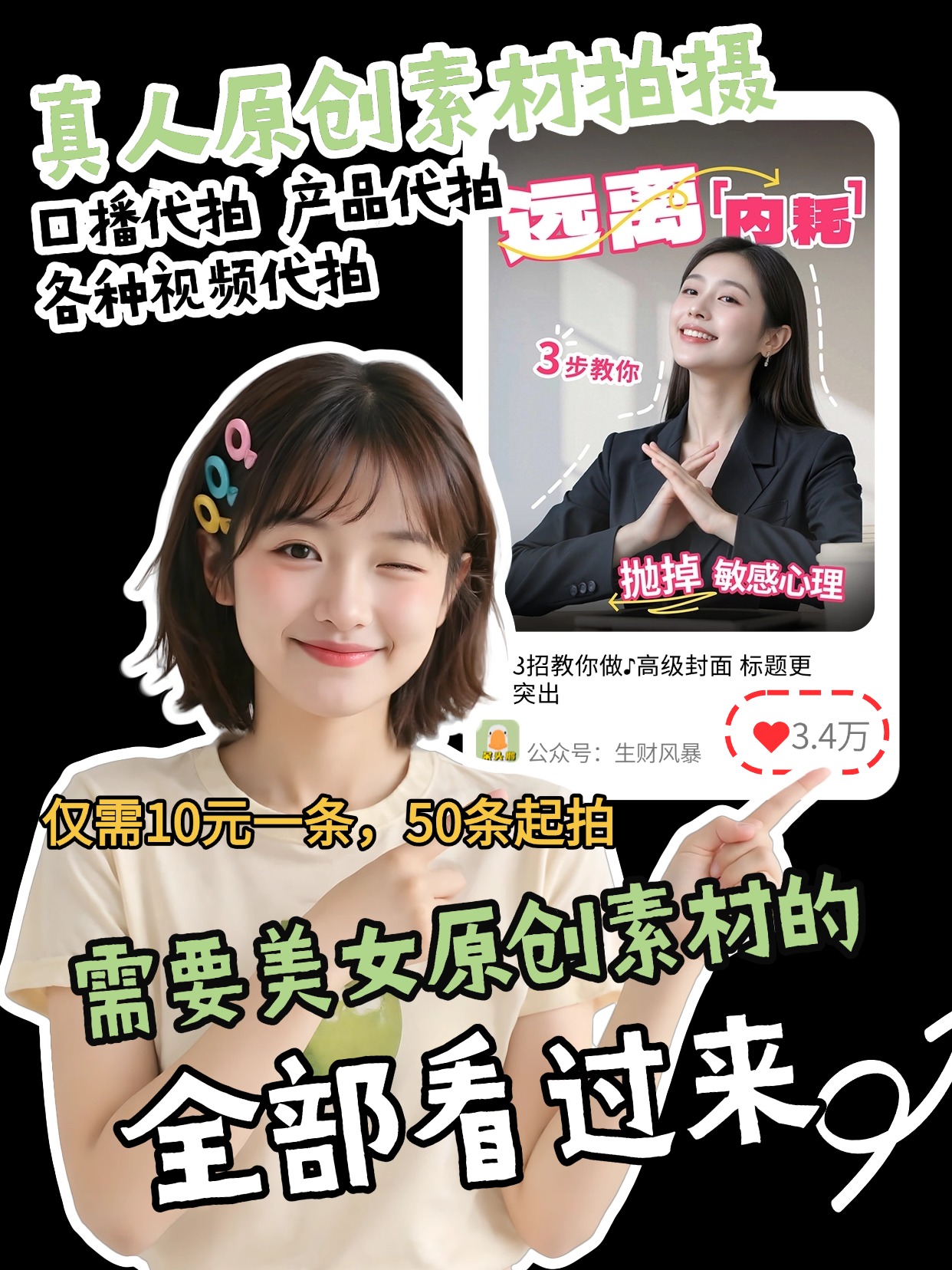真人原创素材拍摄,口播代拍,产品代拍,各种视频代拍