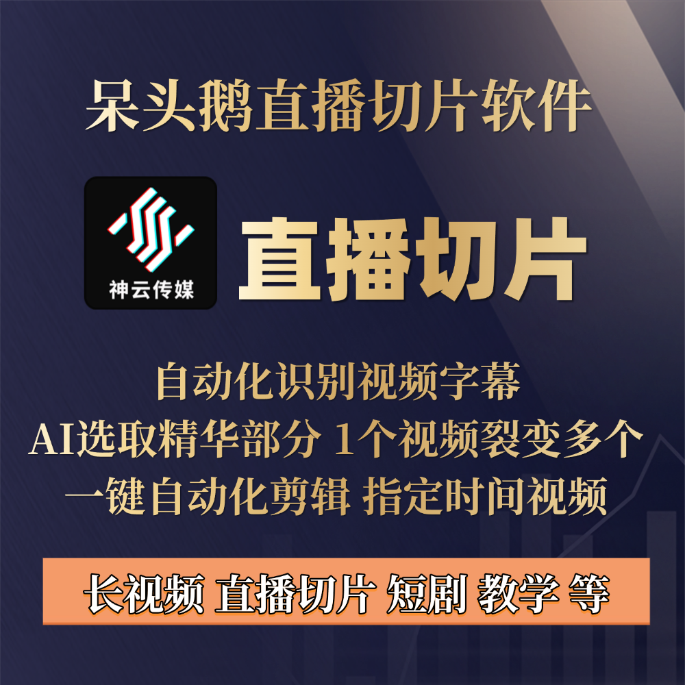 呆头鹅直播切片软件, 长视频 直播切片 短剧 教学 等