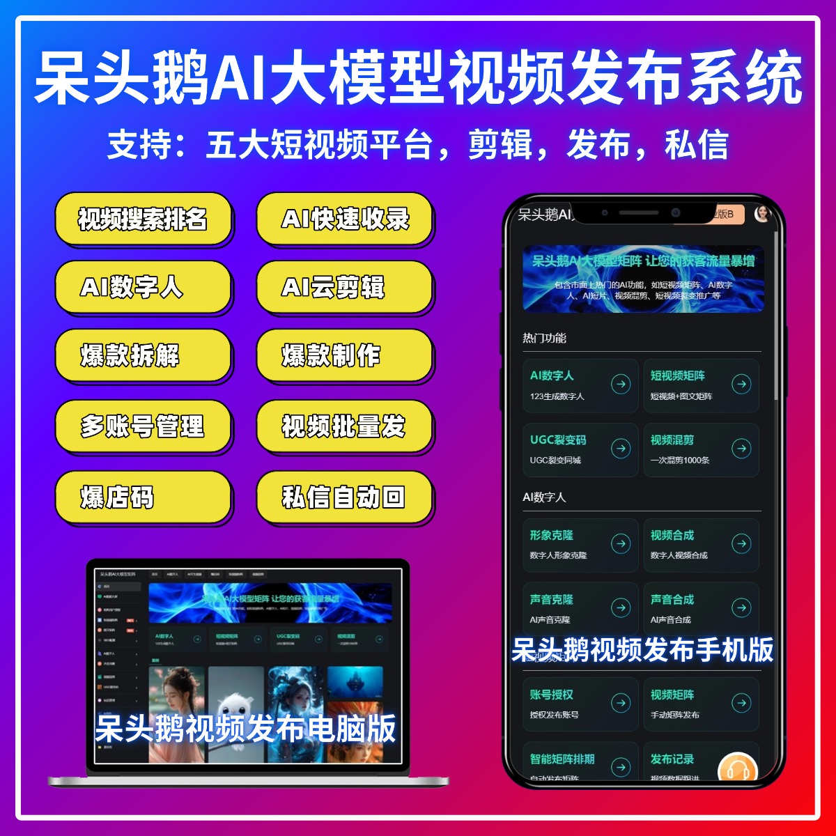第三款:呆头鹅短视频矩阵,视频发布系统【云端版本+客户端】