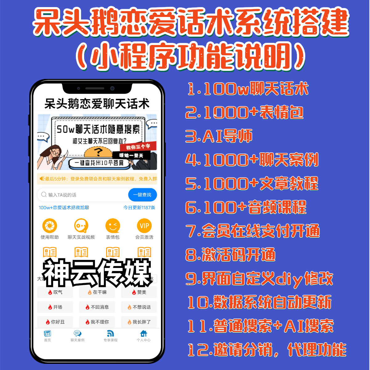 【呆头鹅恋爱话术】小程序搭建(购买搭建小程序+盈利方案+运营推广方案)
