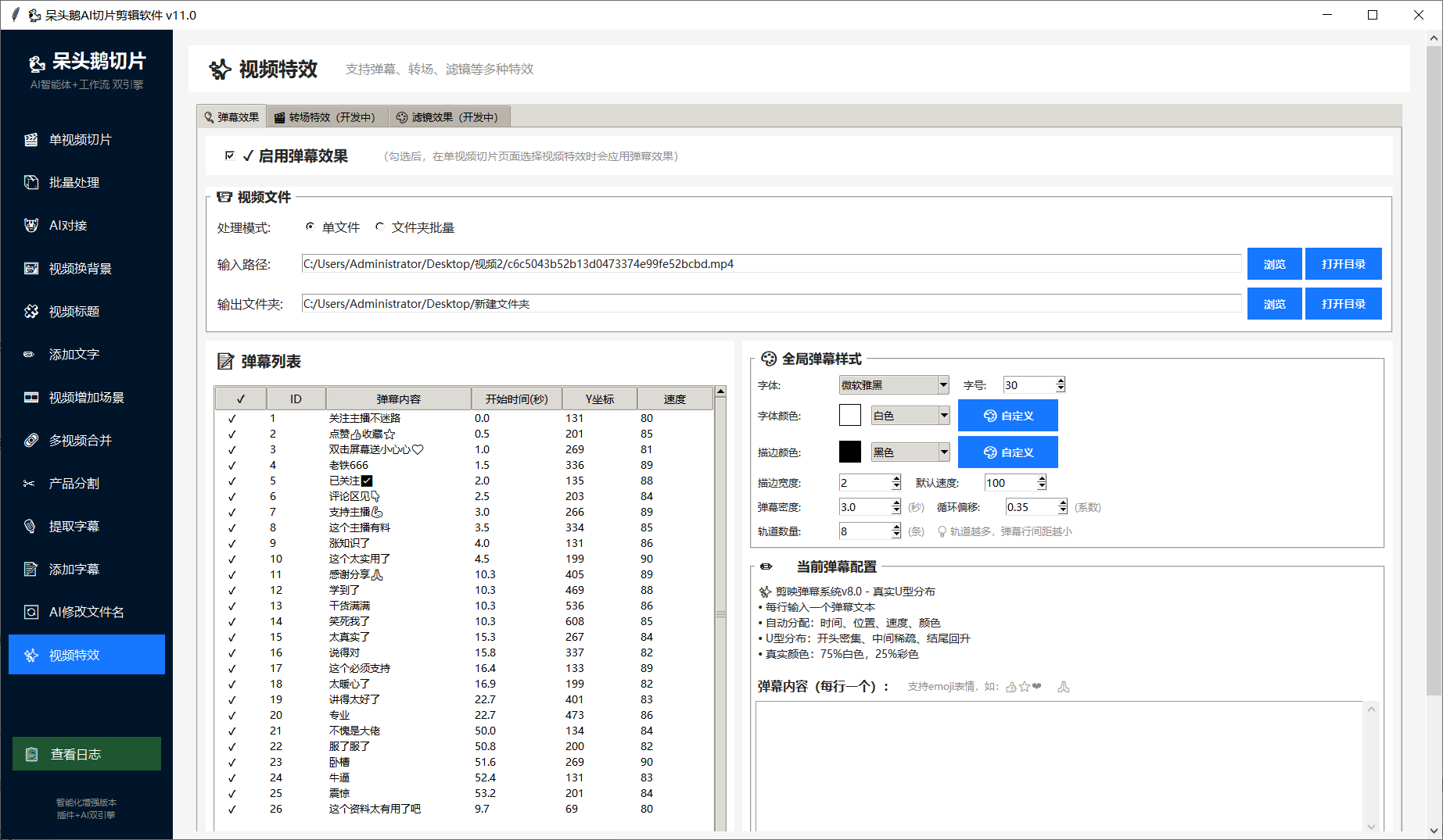 (10)添加特效,添加弹幕