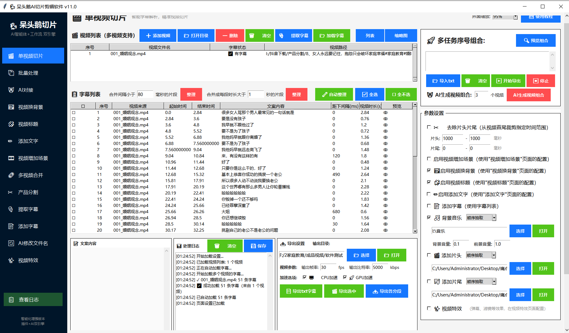 3.支持单视频+多视频+长视频 中剪辑提取精华部分