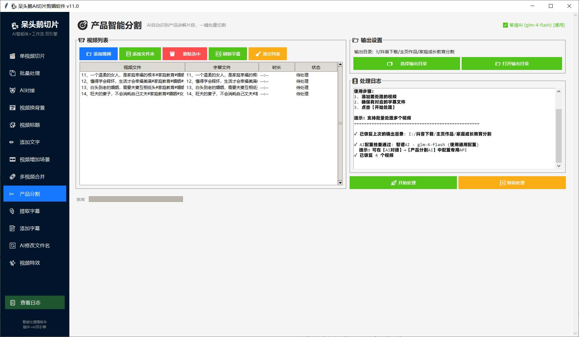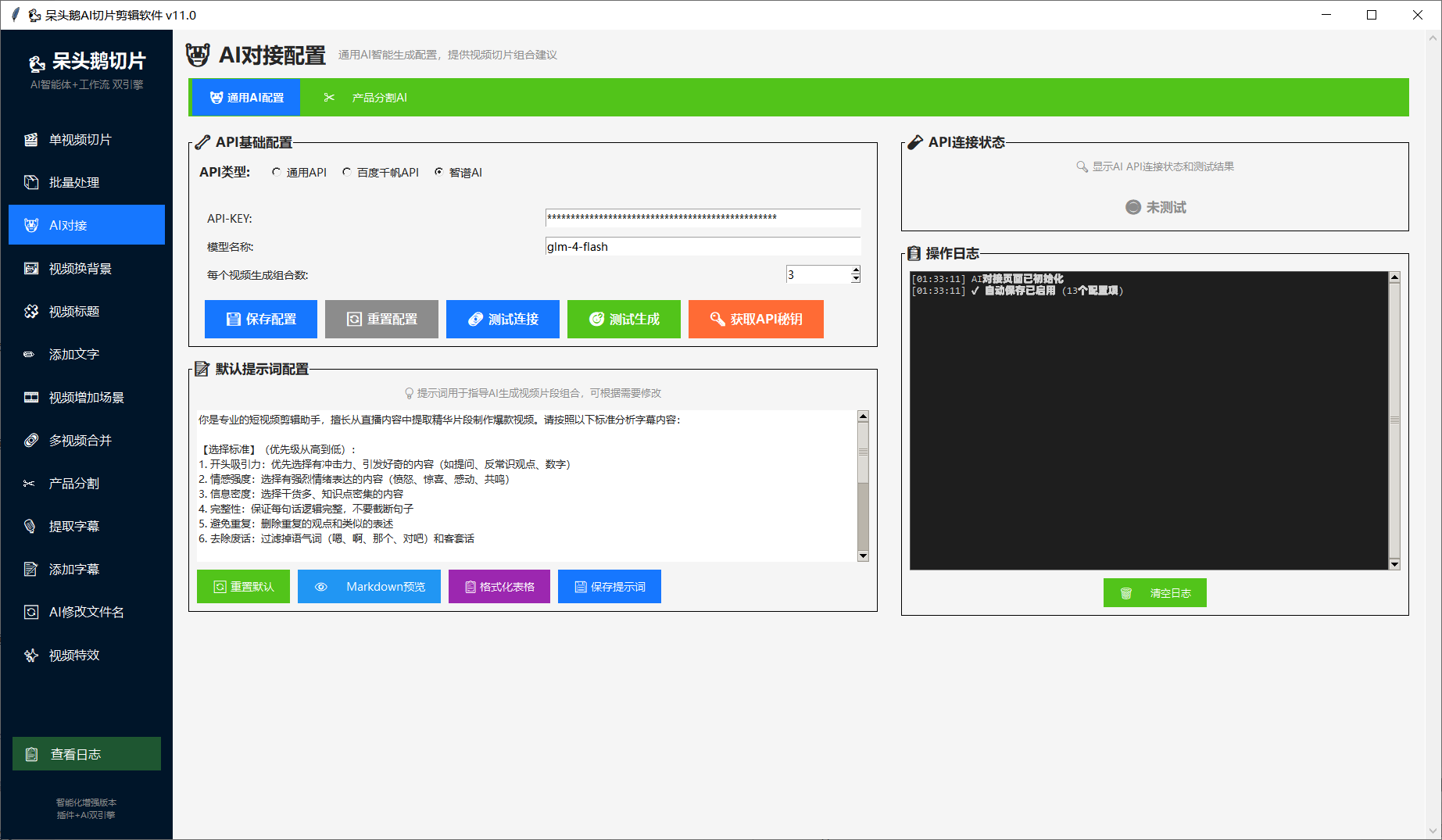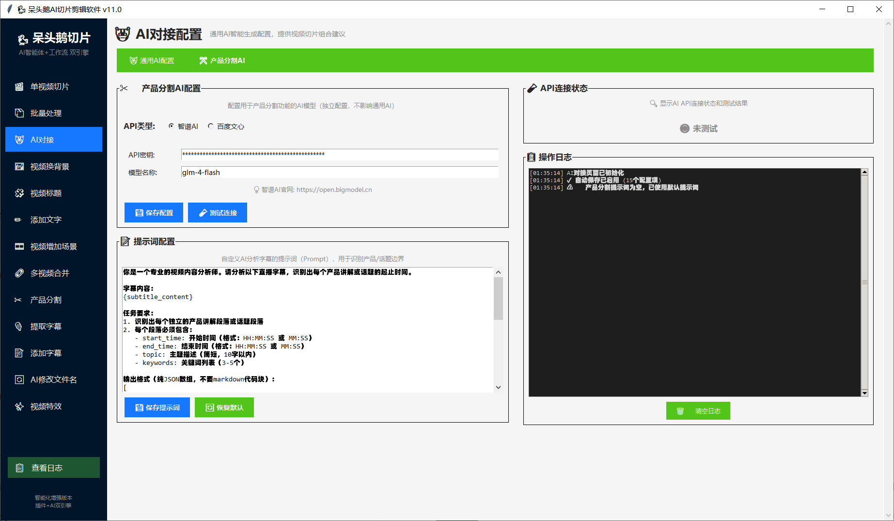 12.支持批量制作AI切片,实时产出视频,多模态识别,百度AI,智谱AI,自定义AI,