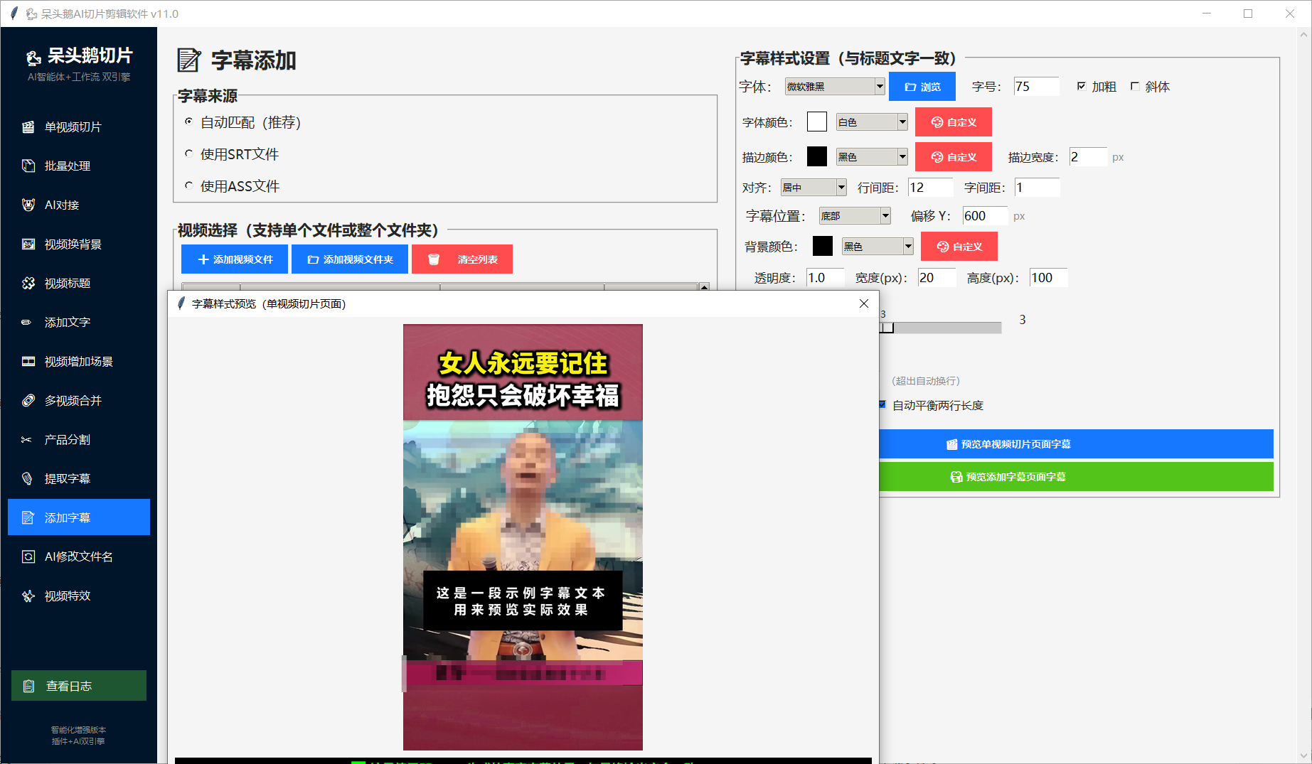 8.支持免费添加字幕,通过提取的字幕进行添加到视频中。