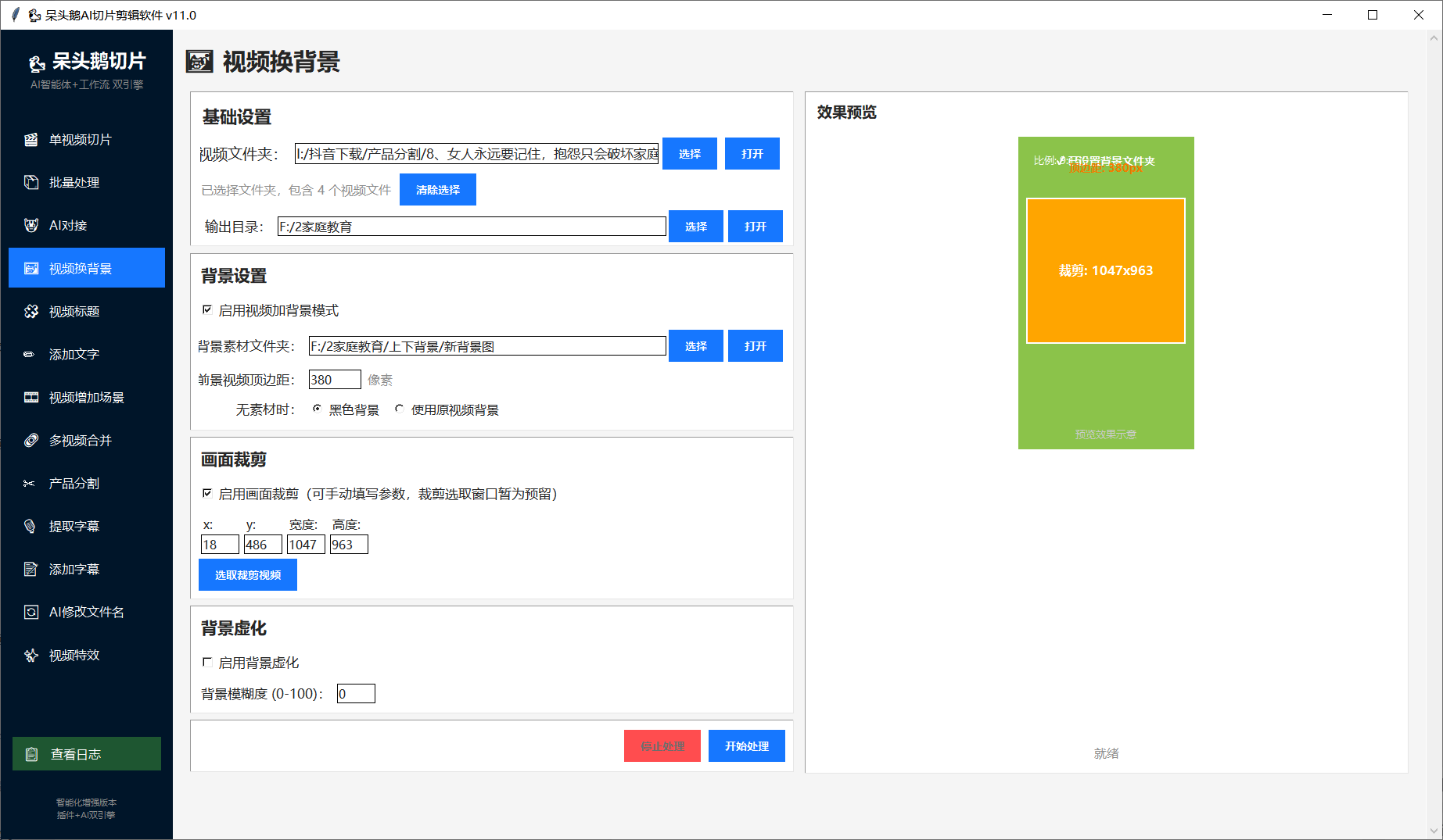 4.一键给原视频更换上下背景