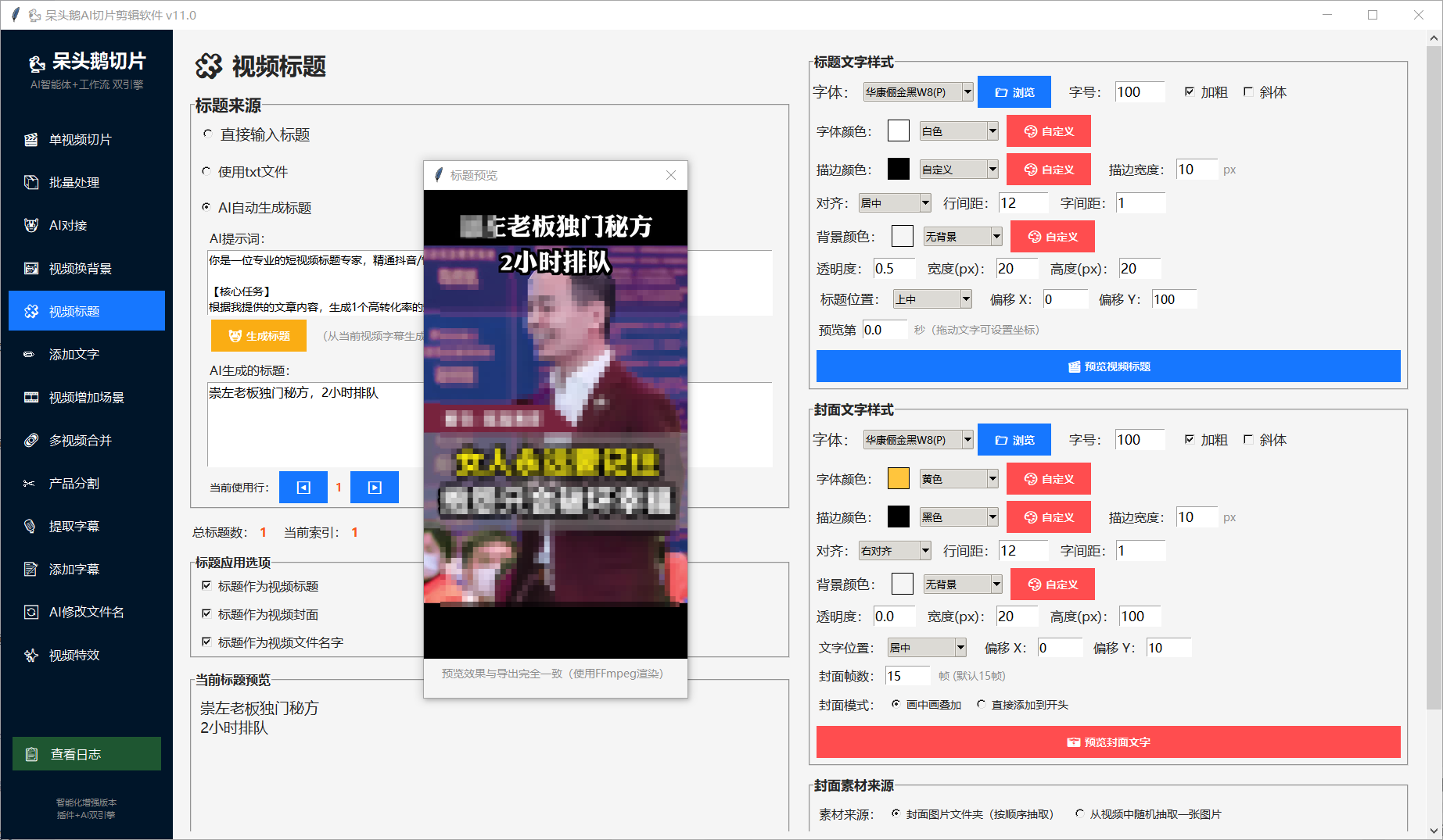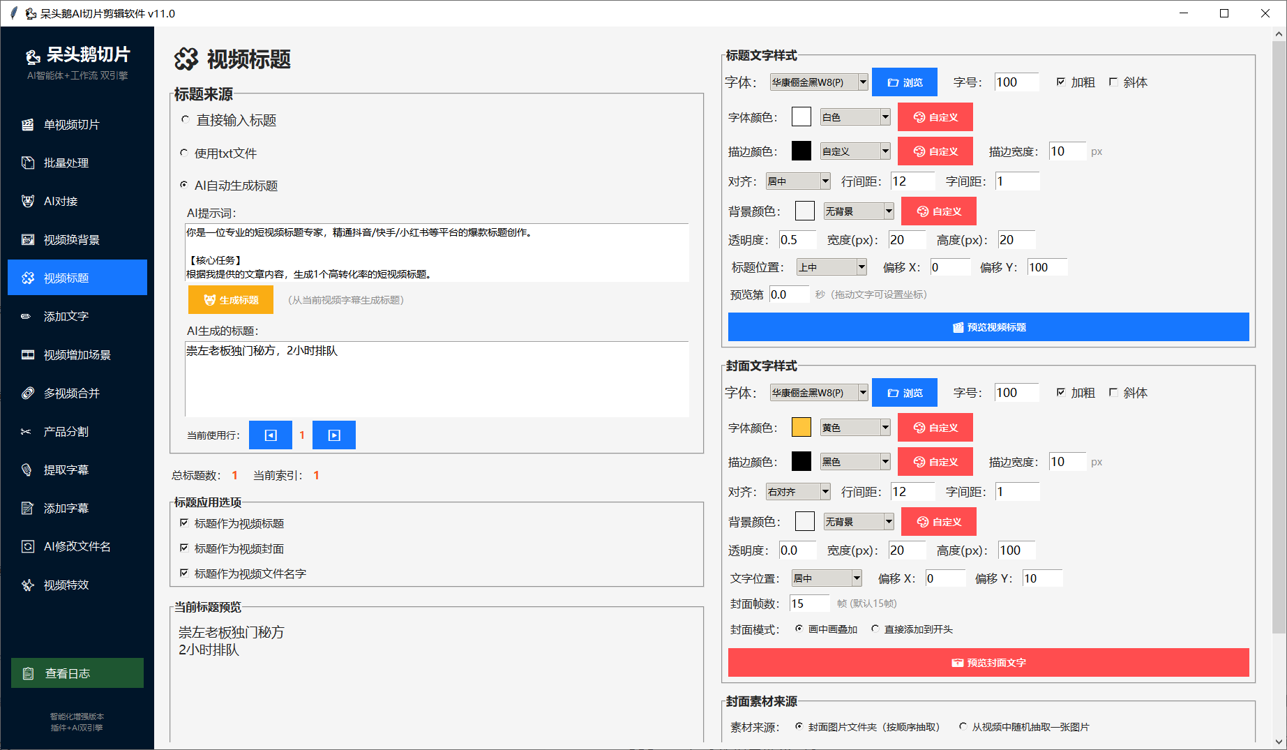 5.一键给视频增加封面和标题